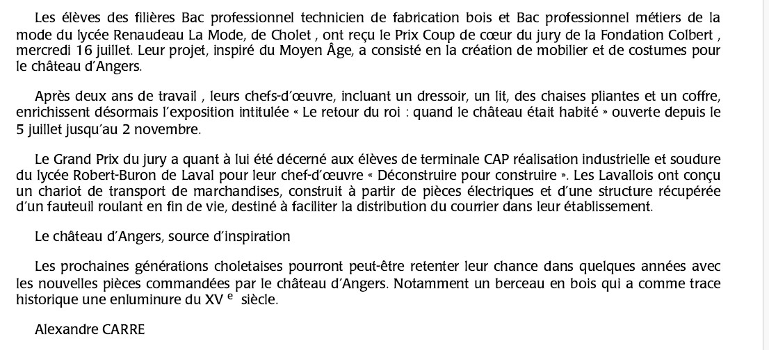 Extrait du Courrier de l’Ouest du 23 Juillet 25