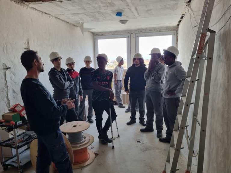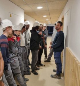 Visite du chantier de rénovation de l’internat du lycée Renaudeau avec les élèves de 1ère et Terminale bac pro MELEC
